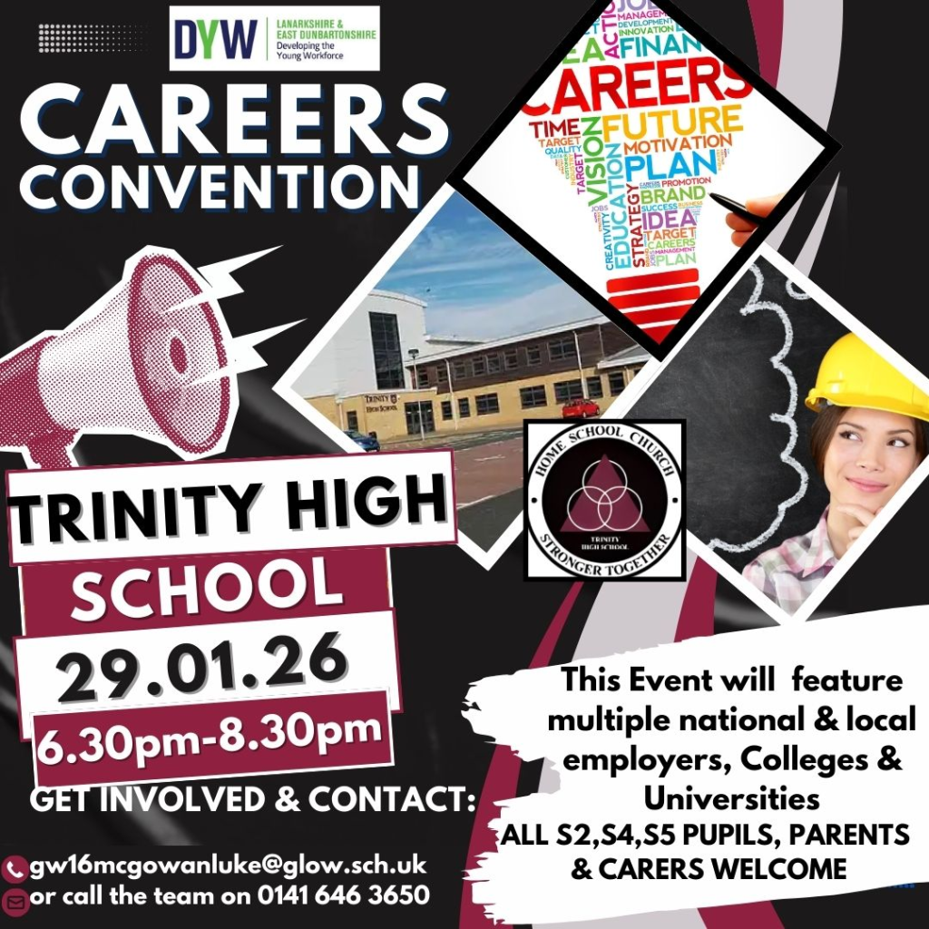 โ Trinity High School, Rutherglen is holding a Careers Convention on Thursday the 29th of January, to help prepare our young people for their future.